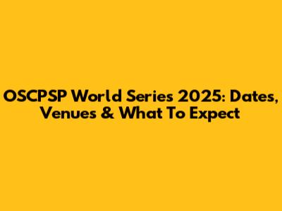 OSCPSP World Series 2025: Dates, Venues & What To Expect