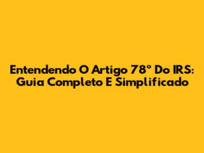 Entendendo O Artigo 78º Do IRS: Guia Completo E Simplificado