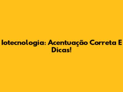 Iotecnologia: Acentuação Correta E Dicas!