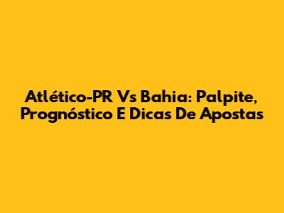 Atlético-PR Vs Bahia: Palpite, Prognóstico E Dicas De Apostas