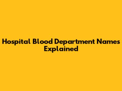Hospital Blood Department Names Explained