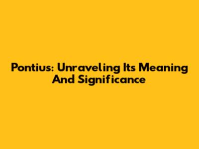 Pontius: Unraveling Its Meaning And Significance