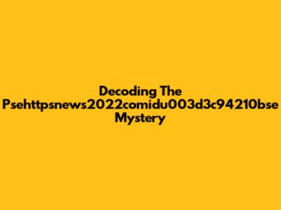 Decoding The Psehttpsnews2022comidu003d3c94210bse Mystery