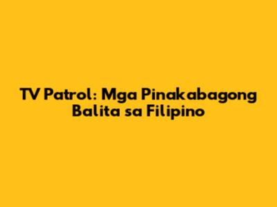 TV Patrol: Mga Pinakabagong Balita Sa Filipino