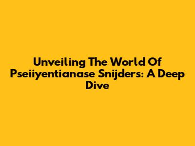 Unveiling The World Of Pseiiyentianase Snijders: A Deep Dive