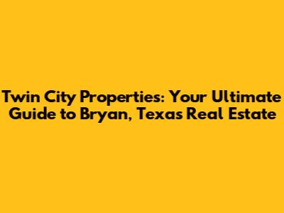 Hey there, property hunters and future Bryan, Texas residents! If you're looking for a new place to call home or an investment opportunity in the heart of Texas, you've probably stumbled upon Twin City Properties. They are a big name in the Bryan-College Station area, but what exactly makes them tick? And more importantly, can they help you find your dream home? Let's dive in and break down everything you need to know about Twin City Properties and the thriving real estate market in Bryan, Texas. We'll cover everything from their services to the hottest neighborhoods, and even some insider tips to make your property search a breeze. So, grab a coffee (or a sweet tea, if you're feeling Texan!), and let's get started!