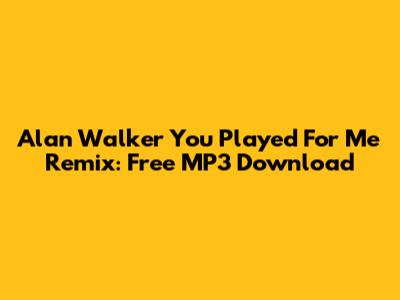 Alan Walker You Played For Me Remix: Free MP3 Download