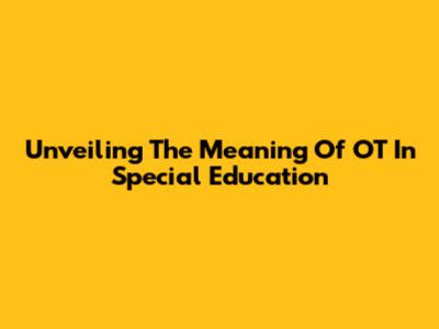 Unveiling The Meaning Of OT In Special Education