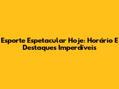 Esporte Espetacular Hoje: Horário E Destaques Imperdíveis
