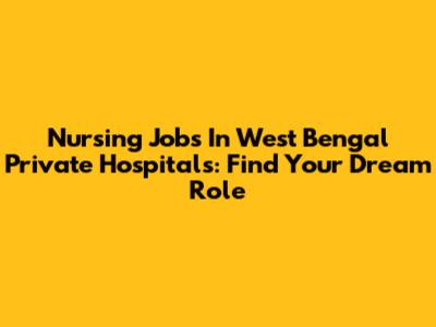 Nursing Jobs In West Bengal Private Hospitals: Find Your Dream Role