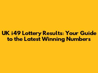 Hey everyone! If you're diving into the exciting world of the UK i49 lottery, you've come to the right place. We're here to break down everything you need to know about the UK i49 results, making sure you don't miss out on those potential life-changing wins. This isn't just about checking numbers; it's about understanding the game, the draws, and how to maximize your chances. So grab your tickets, settle in, and let's get into the nitty-gritty of the UK i49 lottery results!