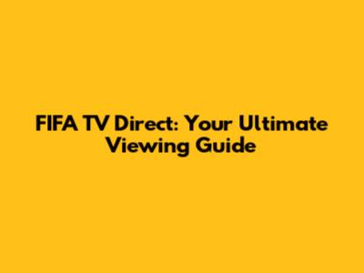 FIFA TV Direct: Your Ultimate Viewing Guide