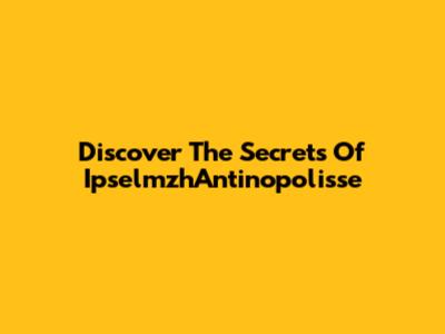 Discover The Secrets Of IpselmzhAntinopolisse