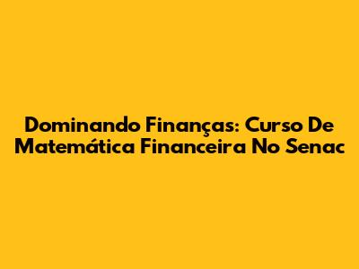 Dominando Finanças: Curso De Matemática Financeira No Senac