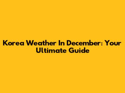 Korea Weather In December: Your Ultimate Guide