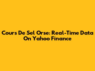Cours De Sel Orse: Real-Time Data On Yahoo Finance
