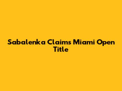 Sabalenka Claims Miami Open Title
