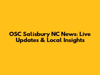 OSC Salisbury NC News: Live Updates & Local Insights