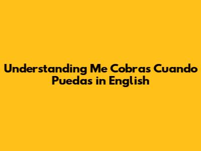 So, what does "me cobras cuando puedas" actually mean? Let's take it apart bit by bit. The literal translation is something like "you charge me when you can" or "you bill me when you can." The core idea is about flexibility and understanding. It's a polite way of saying, "Don't worry about it right now; I'll pay you later, whenever it's convenient for you to collect the payment." The phrase is perfect for situations where you might owe someone money, but there's no immediate pressure to pay up. Think of it like this: you've borrowed something, perhaps shared a meal, or received a service. Instead of offering an immediate payment, you're giving the other person the green light to collect the payment when it's most convenient for them. This creates a more relaxed and accommodating environment, demonstrating respect for their time and circumstances. It is a win-win in the sense that you are showing a lot of respect for the other person and you also benefit from the flexibility of paying later. Understanding this subtlety is crucial for effective communication. Remember, guys, language is not just about words; it's also about the intention behind them. This phrase embodies patience, trust, and a certain degree of empathy. Knowing this will give you an edge in the next social situation.