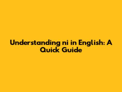 Understanding 'ni' In English: A Quick Guide