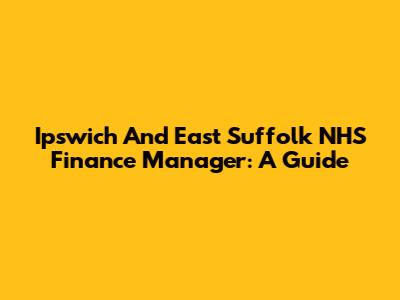 Ipswich And East Suffolk NHS Finance Manager: A Guide