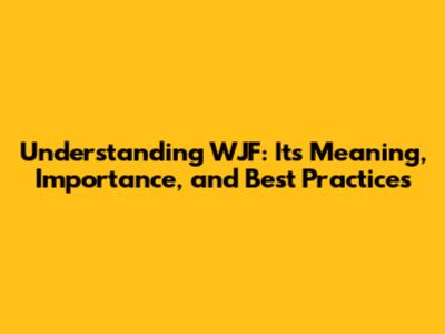Why is 'WJF' so Important? Exploring Its Significance and Impact