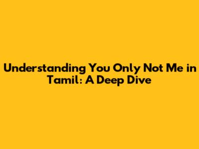 Hey guys! Ever stumbled upon the phrase "You Only Not Me" and wondered what the heck it means, especially in the context of Tamil? Well, you're in luck! Let's break it down, explore its nuances, and see how it translates into the beautiful and expressive language of Tamil. We'll uncover the core meaning, look at some examples, and even dive into the subtle variations that can occur. So, buckle up, and let's get started on this linguistic adventure!