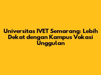 Universitas IVET Semarang adalah pilihan yang sangat baik bagi kalian yang ingin fokus pada pendidikan vokasi dan ingin memiliki keterampilan yang relevan dengan dunia kerja. Dengan berbagai program studi unggulan, fasilitas yang lengkap, dan keunggulan lainnya, Universitas IVET siap mengantarkan kalian menuju masa depan yang cerah. Jangan ragu untuk mencari informasi lebih lanjut dan mempersiapkan diri untuk menjadi bagian dari keluarga besar Universitas IVET Semarang. Kampus ini adalah tempat yang tepat untuk mengembangkan potensi diri dan meraih cita-cita kalian. Jadi, tunggu apa lagi? Yuk, segera daftar dan raih masa depan gemilang bersama Universitas IVET Semarang!