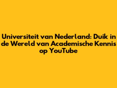 Kortom, Universiteit van Nederland op YouTube is een ongelooflijke bron voor iedereen die kennis wil vergaren en zijn intellectuele horizon wil verbreden. Het is gratis, toegankelijk en boordevol kwaliteitscontent van de beste universiteiten van Nederland. Of je nu een student, professional of gewoon een nieuwsgierige geest bent, UVN biedt een waardevolle ervaring die je kennisniveau kan verhogen en je passie voor leren kan stimuleren. Dus, waar wacht je nog op? Ga naar YouTube, abonneer je op het kanaal van UVN en begin met het ontdekken van de fascinerende wereld van academische kennis!