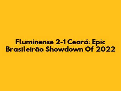 Fluminense 2-1 Ceará: Epic Brasileirão Showdown Of 2022