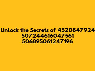 Hey everyone! Today, we're diving deep into something that might look like a jumble of numbers at first glance: 4520847924 507244616047561 506895061247196. Now, I know what you're thinking – "What on earth are these numbers?" Well, guys, these aren't just random digits. They represent a fascinating intersection of technology, data, and potentially, your online experience. We're going to break it all down, making it super clear and easy to understand. Think of this as your ultimate guide to demystifying these specific numerical sequences. Whether you've stumbled upon them in a log file, a database, or some technical documentation, understanding their origin and purpose can be incredibly valuable. We'll explore the possibilities, from unique identifiers to complex data structures, and help you make sense of where these numbers might be coming from and why they matter. So, buckle up, and let's get started on unraveling this numerical mystery!