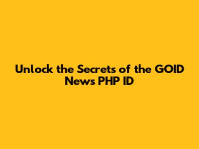 Unlock The Secrets Of The GOID News PHP ID