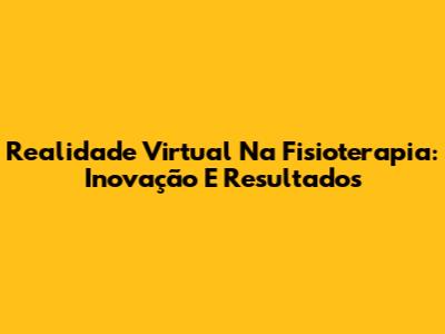 Realidade Virtual Na Fisioterapia: Inovação E Resultados