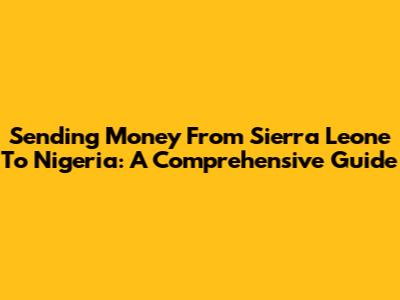 Sending Money From Sierra Leone To Nigeria: A Comprehensive Guide