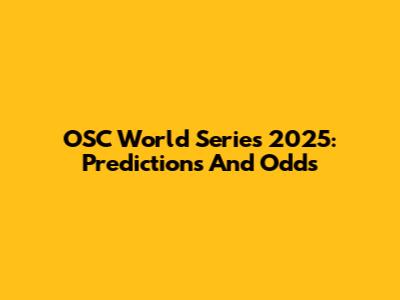 OSC World Series 2025: Predictions And Odds