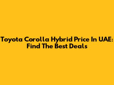 Toyota Corolla Hybrid Price In UAE: Find The Best Deals
