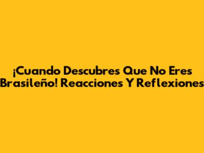 ¡Cuando Descubres Que No Eres Brasileño! Reacciones Y Reflexiones