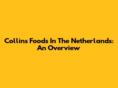 Collins Foods In The Netherlands: An Overview