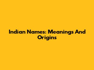 Indian Names: Meanings And Origins