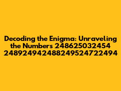 Hey everyone, let's dive into something a little different today! We're going to crack the code on a string of numbers that might seem random at first glance: 248625032454 248924942488249524722494. Now, before your eyes glaze over, trust me, it's more interesting than it looks. We're going to explore what these numbers could mean and how we might decipher them. Think of it like a fun puzzle, a digital treasure hunt if you will. This isn't just about listing out digits; it's about uncovering potential meanings, understanding patterns, and maybe even finding a hidden message. So, buckle up, grab your detective hats, and let's get started. Remember, in the world of numbers, there's often more than meets the eye. We will explore potential interpretations, from simple numerical sequences to more complex coded messages. Our goal is to break down each segment and explore various possibilities. It is important to note, that without additional context or clues, it is difficult to determine the precise meaning. However, that does not mean we cannot play around with the data, have some fun, and look for possible patterns. Who knows, perhaps with enough investigation, we'll uncover something intriguing. The exploration phase involves looking at each number individually, in pairs, and in larger groups. We should consider different mathematical operations, like addition, subtraction, multiplication, and division, to see if any relationships emerge. It's like a game of number detective. So, our primary aim is to explore various possible meanings or interpretations. The true meaning might remain elusive, but the journey to try and figure it out can be very interesting and educational. Let's delve in and see what we can find.