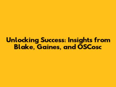 Unlocking Success: Insights From Blake, Gaines, And OSCosc
