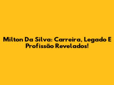 Milton Da Silva: Carreira, Legado E Profissão Revelados!
