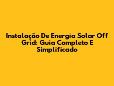 Instalação De Energia Solar Off Grid: Guia Completo E Simplificado