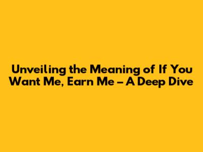 Hey guys! Ever stumbled upon the phrase "If You Want Me, Earn Me" and wondered what it truly means? Well, you're in the right place! This isn't just a catchy quote; it's a statement packed with layers of meaning, often used to express the value one places on themselves and the effort they expect from others. Let's break down this powerful phrase, exploring its nuances, origins, and how it applies to various aspects of life, from relationships to personal growth. Get ready to dive deep and uncover the secrets behind this intriguing expression!