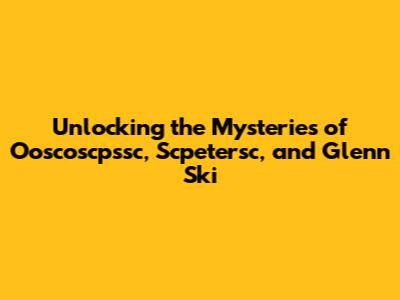 Hey guys! Ever stumbled upon some names that just make you scratch your head and wonder, "What in the world is that?" Well, today we’re diving deep into the intriguing world of Ooscoscpssc, Scpetersc, and Glenn Ski. These might sound like secret codes or maybe even characters from a fantasy novel, but trust me, there's a story behind each one, and we’re going to unravel it together. Let’s get started on this adventure of discovery and find out what makes these names so unique and captivating.