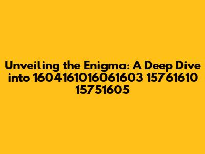 Hey everyone! Today, we're diving deep into the fascinating world of 1604161016061603 15761610 15751605. Now, I know what you're thinking – it sounds like a code, a secret society, or maybe even a lost language. But fear not, because we're going to break it down, piece by piece, and uncover the true meaning and potential hidden within this string. This is going to be a fun journey, guys, so buckle up and get ready to learn something new!