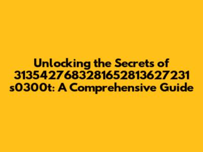 Deciphering the Code: Understanding the Basics of 3135427683281652813627231 s0300t