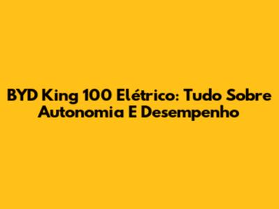 BYD King 100 Elétrico: Tudo Sobre Autonomia E Desempenho