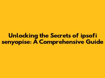 What Exactly Is ipsofi senyopise?