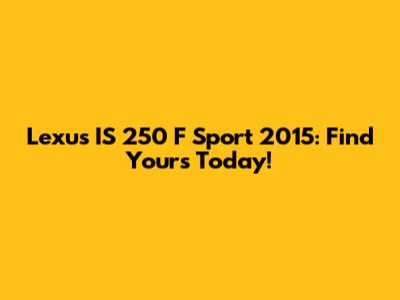 Lexus IS 250 F Sport 2015: Find Yours Today!